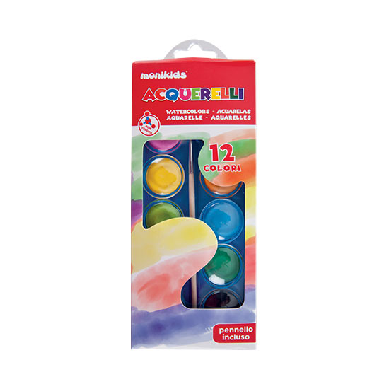 Pastiglie di tempera dai colori luminosi, intensi e coprenti. La pittura può essere diluita con acqua per ottenere fantastiche trasparenze ed effetti acquerello. Disponibili in confezioni da 12 e 24 colori, complete di pennello.