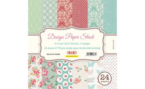 Confezione da 24 cartoncini stampati con motivi floreali in 6 fantasie.