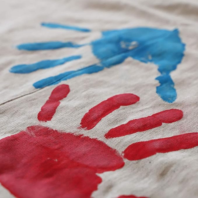 Tempera a dita tessile in vasetto, pronta all’uso, in pratica valigetta riutilizzabile, 6 colori. Adatta al contatto con la pelle è rivolta alla prima infanzia ed è espressamente studiata per essere applicata con le dita su tessuti. Morbida e piacevole da toccare, è facile da stendere. Quando è perfettamente asciutta rimane di colore intenso, senza screpolature anche se stesa in strati spessi e diviene permanente. Durante l'utilizzo si raccomanda di proteggere gli abiti e la superficie di lavoro. Non necessita di fissaggio ma deve essere lasciato asciugare perfettamente per almeno 24 ore a temperature tra i 18 e i 25 °C. Se si vuole stirare appoggiare la parte colorata sopra una carta da forno e stirare dal rovescio avendo cura di appoggiare sul rovescio uno straccio in modo da evitare di sporcare il ferro da stiro. Una volta asciutto non è lavabile dai tessuti. Resistente al lavaggio a 30°. Rimuovere immediatamente eventuali macchie indesiderate secondo istruzioni.