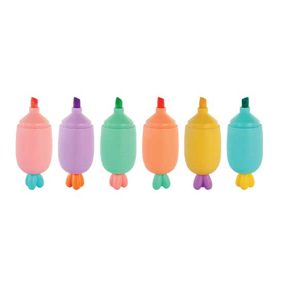 Set di 6 evidenziatori in differenti colori, molto spiritosi, perfetti per collezionarli o per regalini sia in set che singolarmente