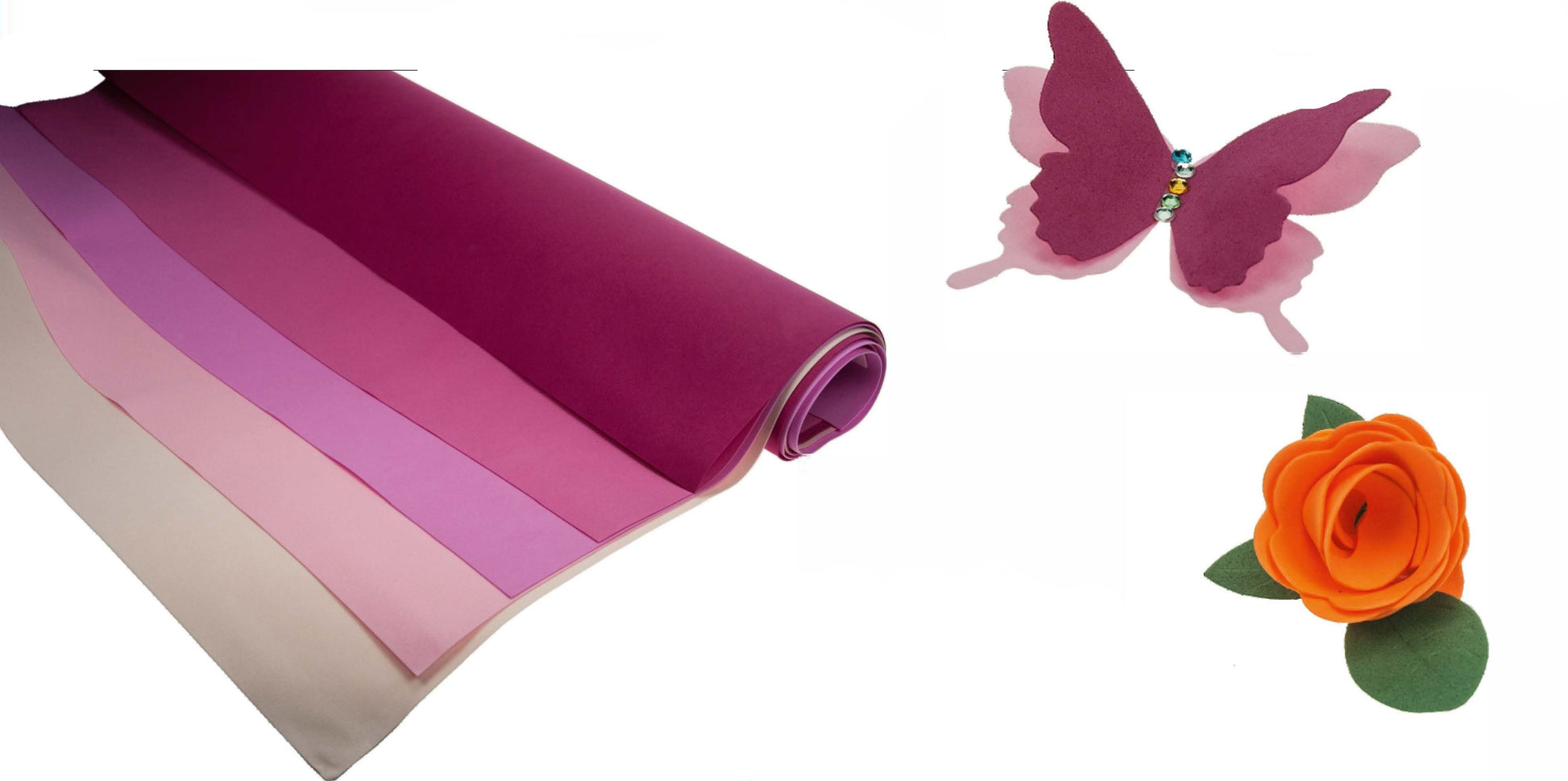 Confezione da 5 fogli di gomma Eva (fommy o gomma crepla) sottilissima effetto seta, soft touch
