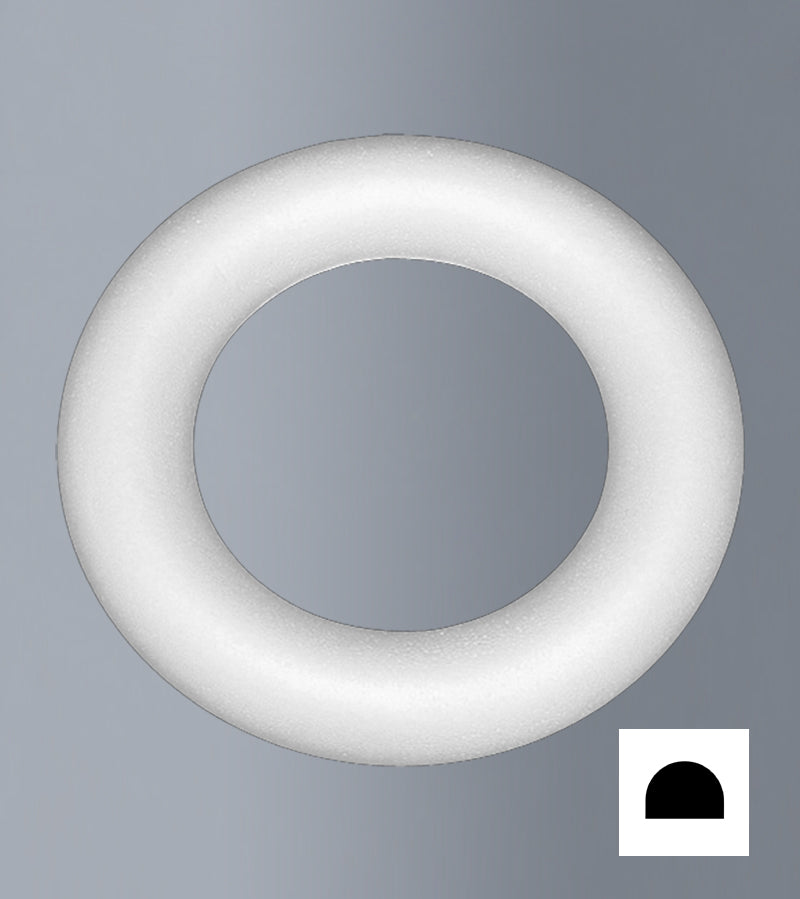 Forma di ghirlanda 3D in polistirolo a base piatta (bombata da un solo lato) da decorare.