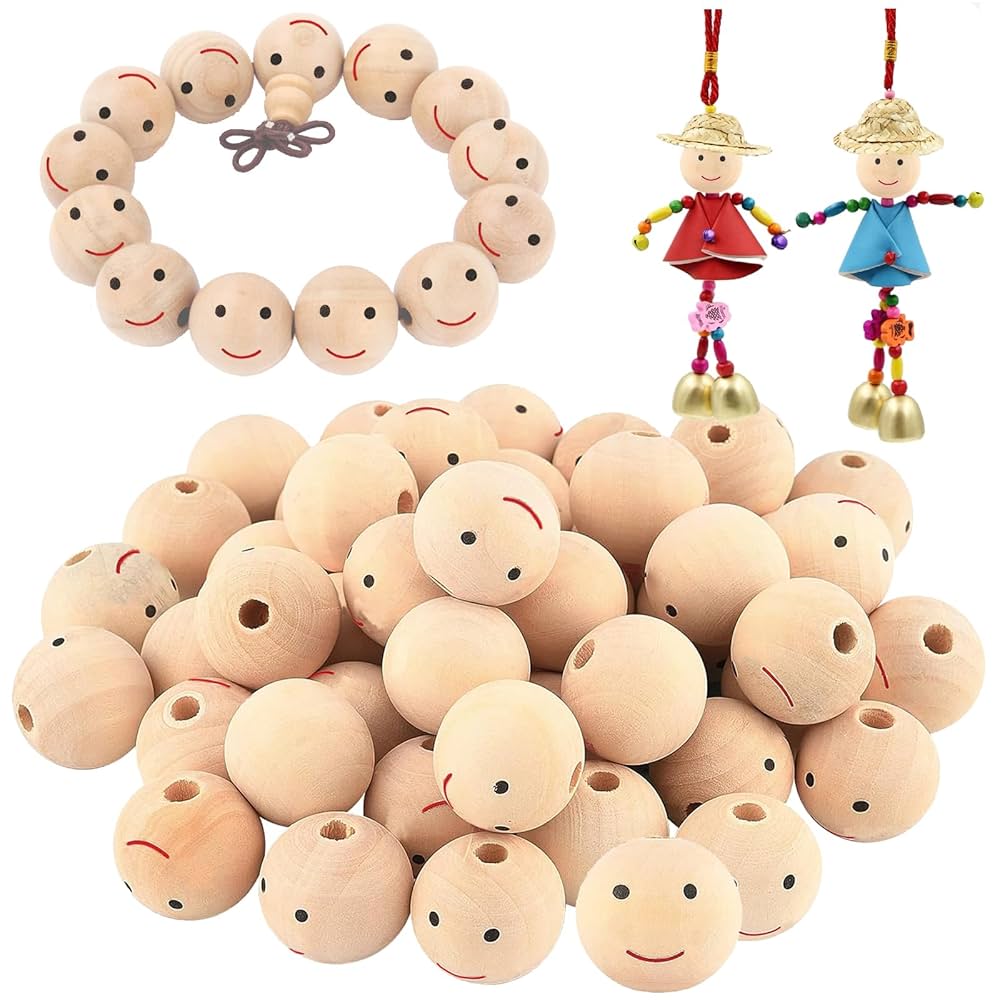 Confezione perle in legno con foro e faccina stampata su un lato (occhi e bocca) ideali per fare bamboline, angioletti, decorazioni , didattica, insiemistica ecc.