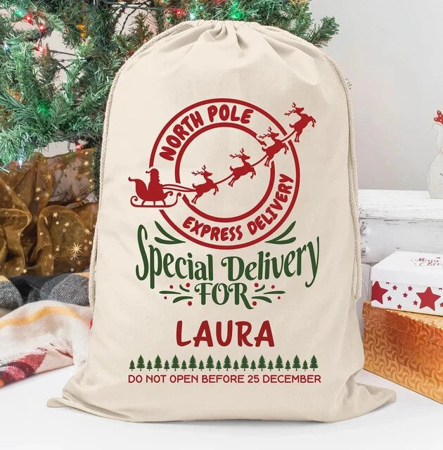 Il tipico sacco dei regali di Babbo Natale, tutto da personalizzare per le tue decorazioni per la casa, per fare una sorpresa speciale per i tuoi bambini o semplicemente da utilizzare come sacco!