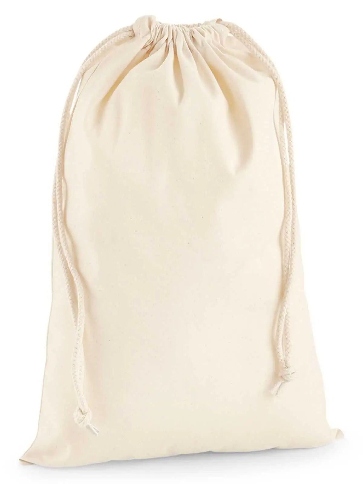 100% cotone. 200 gsm (6 oz/yd²), superficie di stampa ideale per la decorazione, cotone di altissima qualità per una durata ottimale, chiusura a doppia coulisse. Superficie max. area di stampa: XL - 45 x 55 cm. Dimensione: 49,5 x 75 cm. Capacità: 38 litri.